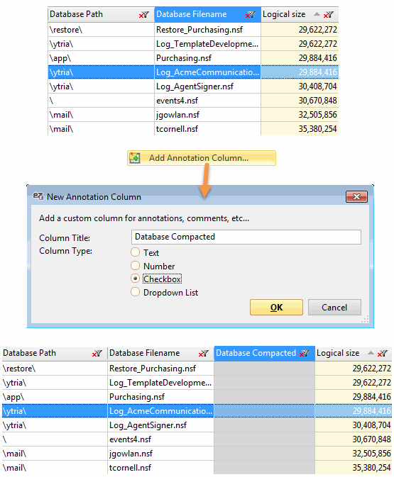 グリッド内に IBM Domino Server やデータベースの値に意味を追加するのに便利です。