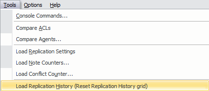 Load Replication History (Reset Replication History grid)