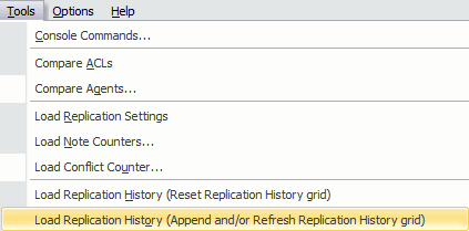 Load Replication History (Append and/or Refresh Replication History grid)