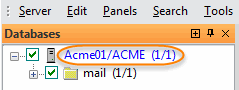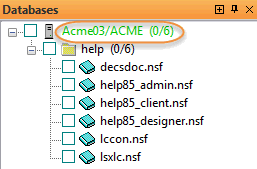 サーバー名の上をクリックすると、データベースサーバーツリーを再更新します。最初にロードした後で、フォルダーやデータベースが新規に作成されたものがあれば、リストされます。