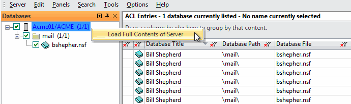 サーバー名の上を右クリックしてサーバー全体の内容をロードできます。