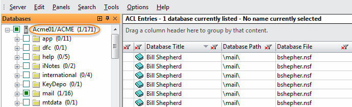 aclEZ, agentEZ, databaseEZにおいて、緑色でツリーのサーバーが表示されている場合は、サーバーのすべてのフォルダーがロードされているわけではありません。 指定するフォルダのみロードオプションで定義されたリストからのフォルダーのみがロードされます。