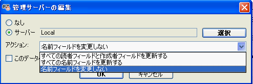 [要素の編集]を選択した場合に表示されます。このダイアログボックスでは、管理サーバーを設定できます。管理サーバーを設定するときは、