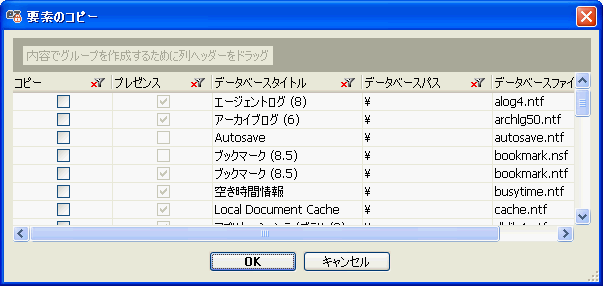 隣接しない複数のエントリを選択するには Ctrlキーを使用し、 [コピー]チェックボックスのオンとオフを切り替えるには Spaceキーを押します。