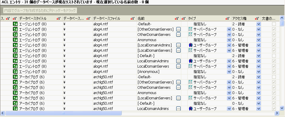 [ACL エントリ]ペインでは グリッドインターフェースが使用されているため、列のヘッダーの [フィルタ] アイコンをクリックすると、一覧表示される項目の数を絞ることができます。