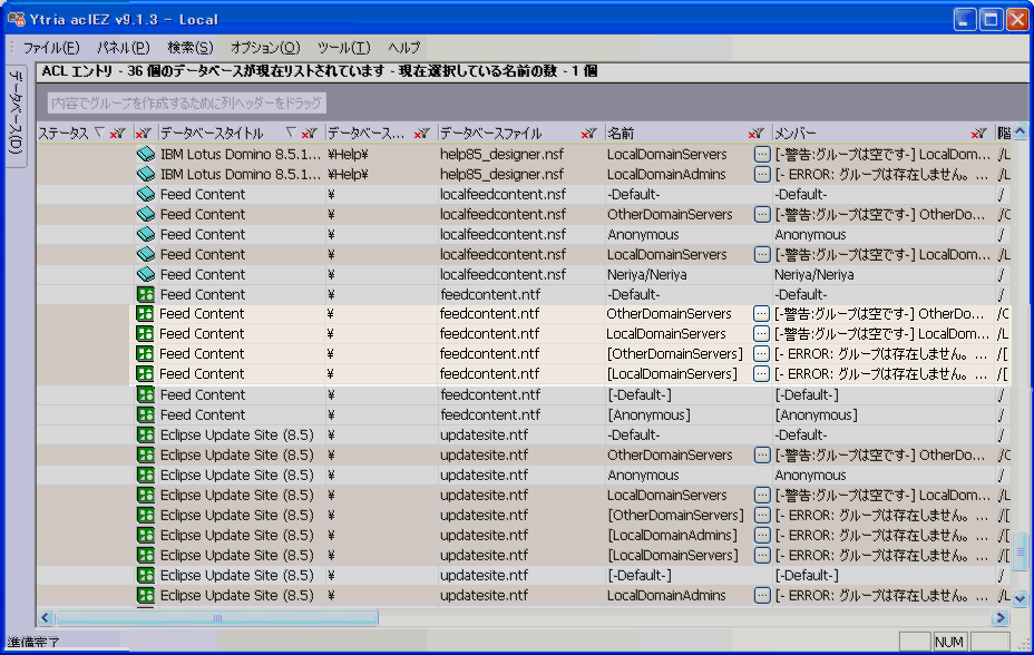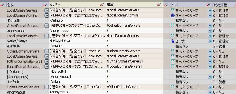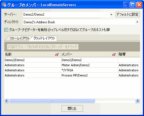 [ACL エントリ]ペインの [名前]列の下の関連セルに表示されるボタンは、 [グループメンバーの表示] コンテキストメニューオプションとまったく同じ動作を実行します。