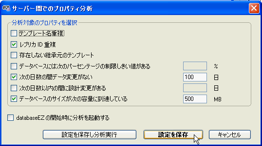 - [設定を保存]:プロパティ分析でチェックされたプロパティを保存します。databaseEZ は、次にプロパティ分析を起動するときに、この設定を使用します。