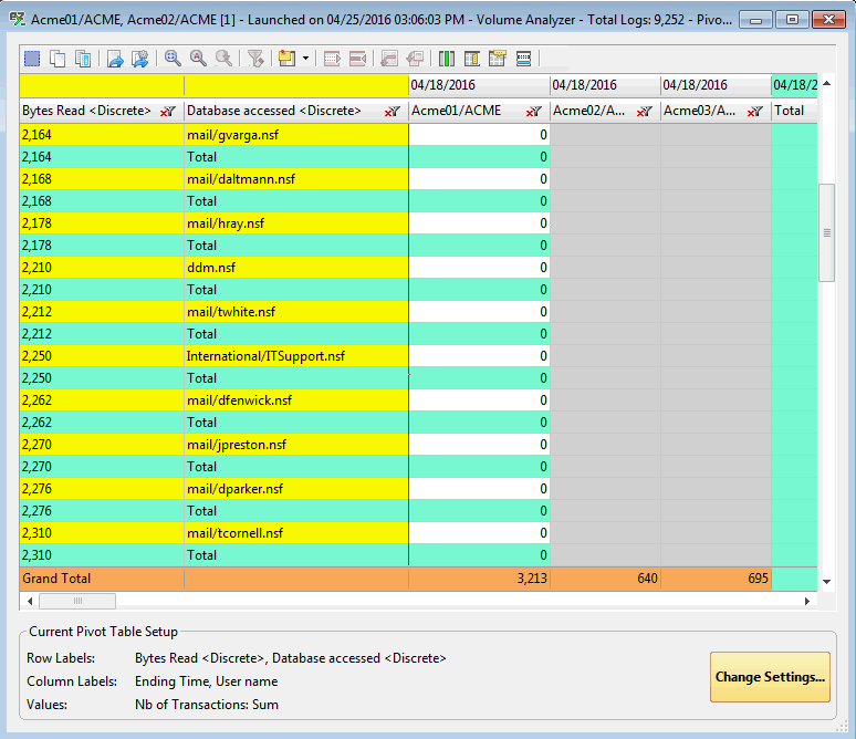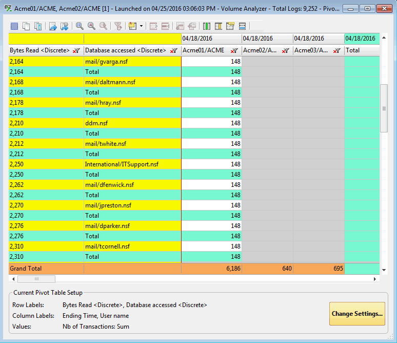 こちらは、Log Doucment NoteID を Unique Index として指定せずに出したピボットテーブルの結果です。