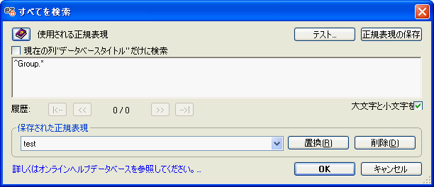 Ytria ツールには正規表現履歴機能が備わっています。有効な正規表現を 100 個まで再利用することができます。 また、[正規表現] ボタンもあります。このボタンを使用すると、正規表現検索を恒久的に保存することができます。正規表現の保存機能により、 Notes データディレクトリ内の YtriaRegex.sfd ファイルに検索が保存されます。