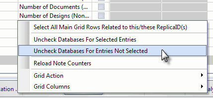 - このレプリカ ID(複数も可)に関連するすべてのメイングリッドの行を選択してください: メイングリッドの選択を、[ノートカウンター] パネル内の選択に合わせるための簡単な方法です。